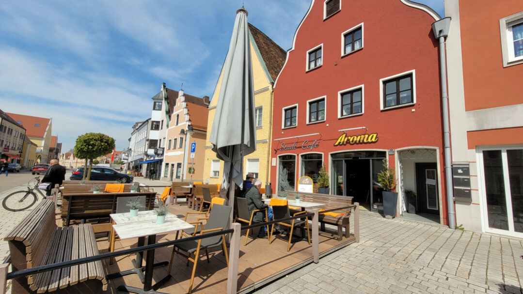 Unser Aroma Rain Stadtcafé liegt zentral in der Hauptstraße – perfekt für eine kleine Auszeit beim Stadtbummel oder nach einem Spaziergang zum Schloss und dem bekannten Blumenpark.